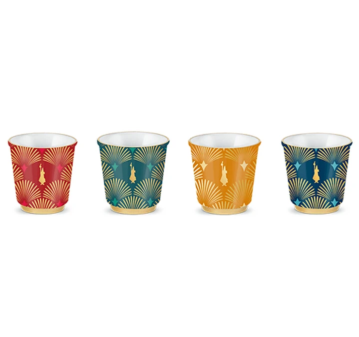 Offez-vous un voyage au rythme des fêtes enchanteresses et jazzies des années folles ! Bialetti plonge dans l’Histoire avec des motifs géomértiques et des couleurs pétillantes en proposant une collection de 4 tasses originales avec cette collection Déco Glamour.