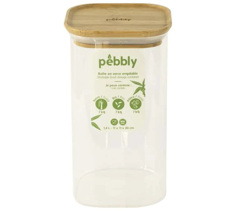 Boîte De Conservation Carrée – En Verre Et Bambou 1.4L – PEBBLY
