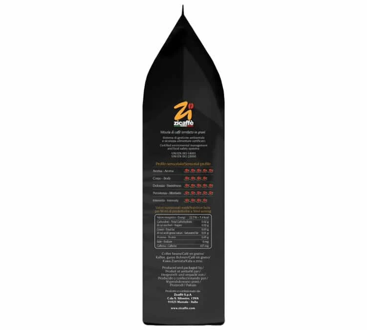 Ce café en grains de Zicaffè possède un arôme intense de fleurs, mais aussi des notes de chocolats en arrière bouche.