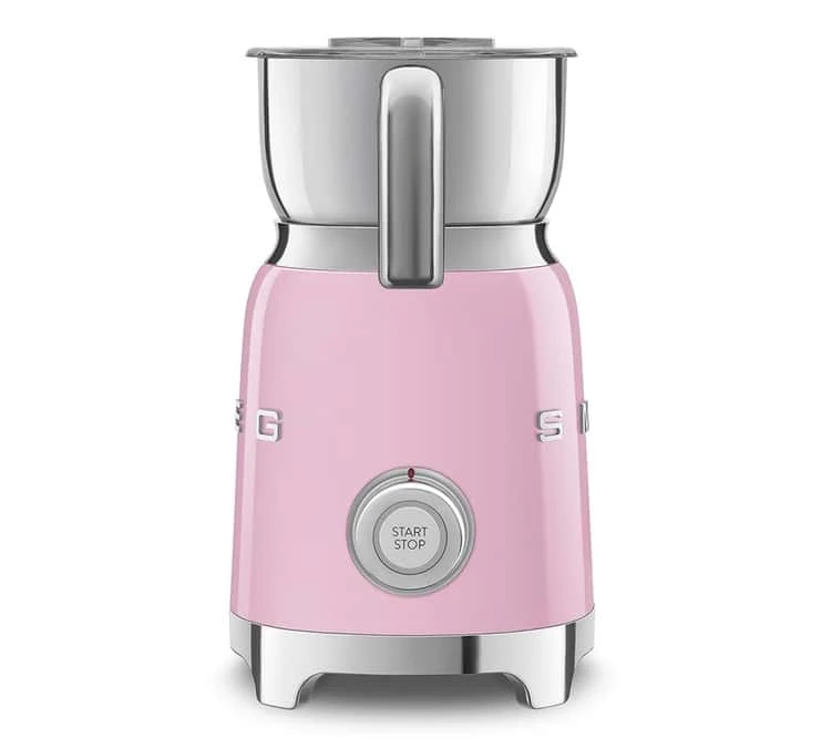 Dernier de la gamme de petits électroménagers, la MFF01PKEU est une chocolatière et émulsionneur de lait au design inspiré des années passées. En équipant votre cuisine de cette Chocolatière SMEG, vous donnerez alors, une touche rétro-chic à celle-ci. Vous allez sans aucun doute apprecier son corps en Inox ainsi que sa structure rose qui la rend très élégante.