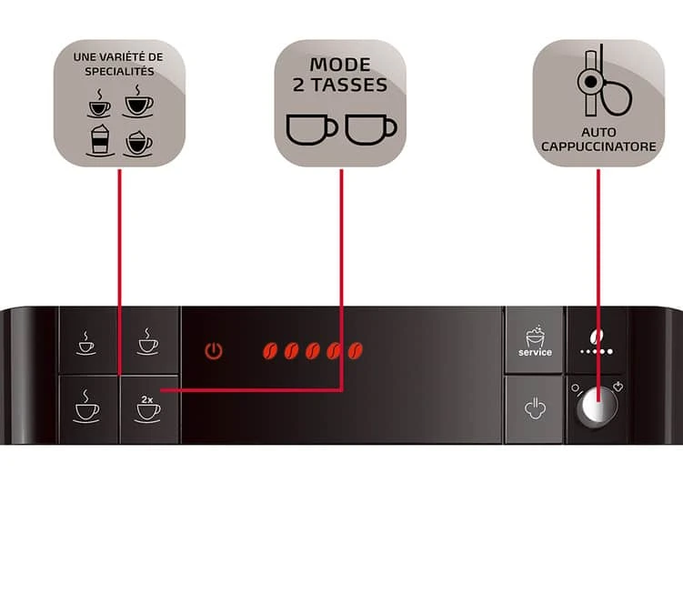 Melitta offre avec cette Passione un résultat en tasse incomparable. Grâce à ses nombreux réglages (intensité, longueur en tasse, température…) paramétrez votre machine pour des boissons café parfaites : expresso, ristretto, café allongé, cappuccino, latte macchiato … tout est permis !