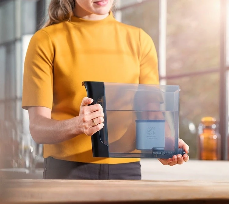 Le filtre à eau AquaClean est notre innovation brevetée. Il vous permet d’exploiter au maximum le potentiel de votre machine à café entièrement automatique. En changeant le filtre quand la machine vous y invite, vous ne devrez la détartrer que lorsqu’elle aura préparé jusqu’à 5 000 tasses, afin de bénéficier d’une eau claire et pure (environ 6 cartouches AquaClean utilisées en 2 ans).